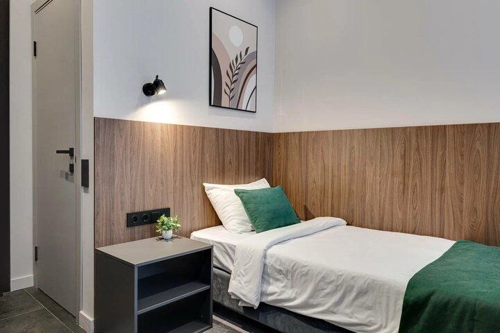 Комфортный номер с современным дизайном. Идеально подходит для деловых поездок и проживания туристических и корпоративных групп. В номере две односпальные кровати и письменный стол.